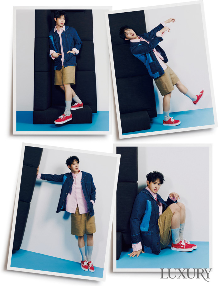 데님 재킷은 잉크. 핑크 셔츠는 타미 힐피거. 리넨 소재의 버뮤다팬츠는 디올 맨.