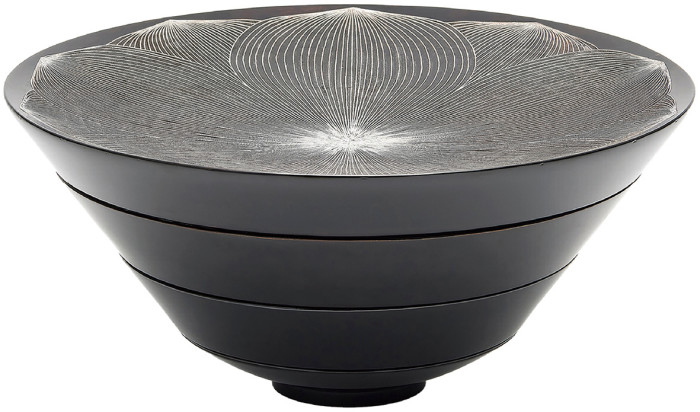 철로 만든 플래터에 연꽃 모양의 은 상감을 했다.