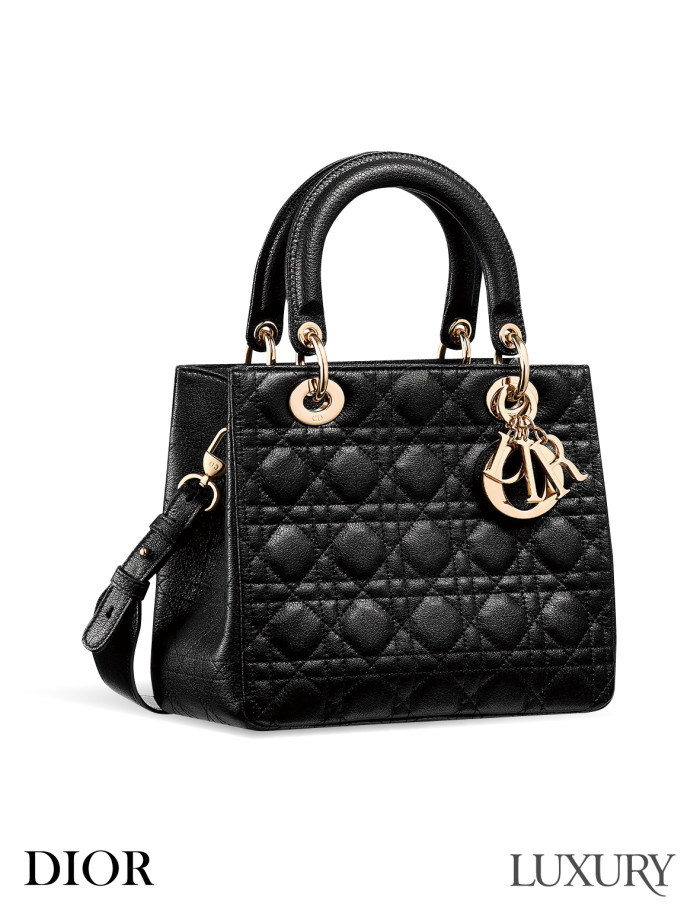 디올, ‘레이디 디올’ 백 무슈 디올이 늘 지니고 다니던 행운의 부적을 상징하는 메탈 참 장식이 특징인 ‘레이디 디올’ 백. 직각으로 떨어지는 정사각형이 고급스러운 분위기를 자아낸다. 가방 전체에 브랜드의 시그너처 까나쥬 스티칭을 더해 퀼팅 질감을 구현했으며, 탈착 가능한 숄더 스트랩을 함께 제공해 다양한 연출이 가능하다.
