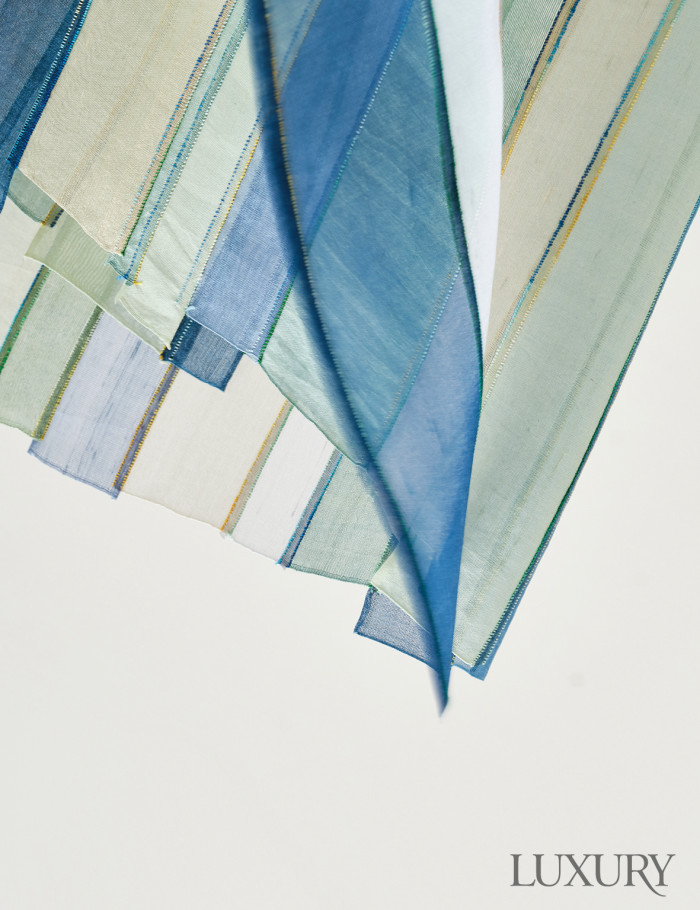 검이불루儉而不陋 화이불치華而不侈. 정제된 아름다움을 작품 세계의 근간으로 삼는 최덕주 작가. 최 작가의 조각보에서는 마치 몬드리안의 추상화를 보는 듯한 짜임새 있는 구성과 색의 배합을 발견할 수 있다. 작가는 조각보가 예술 작품의 하나가 될 수 있음을 몸소 보여준다. 이를 위해 화학 염색은 일절 배제하고 쪽, 잇꽃, 치자, 쑥, 양파 등 천연 재료로 직접 염색을 한다. 발효 시기에 따라 미묘하게 달라지는 색의 채도, 명도를 면밀히 파악해 오묘하고도 깊이 있는 색을 구현해내는 것. 안동포, 한산모시, 명주 등 우리나라 전통 천에 천연 기법으로 염색해 탄생시킨 색으로 표현한 조각보 작품들은 작가만의 감성이 담긴 고아한 매력을 품고 있다.