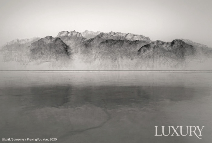 정소윤은 유연하면서도 무한한 가능성을 지닌 섬유로 자연과 인체를 담은 조형 작업을 하고 있다. 섬유 예술을 전공한 그는 섬유의 가장 기초가 되는 실을 이용해 드로잉을 하듯 회화의 느낌을 살려 한 폭의 수묵화처럼 표현한다. 실은 재봉틀로 인해 서로 엮이고 엮여 단단한 면이 되어 공간을 드로잉의 영역으로 확장시킨다. 특히, 인간의 삶에 대해 고찰을 거듭한 그는 결국 우리는 자연의 일부이며 거대한 자연 앞에 작은 하나임을 포용해 솔직하고 긍정적인 시선으로 삶을 바라보고자 한다. 섬유가 가진 촉각과 조형미가 만들어내는 시각적 풍경은 초현실적이기도 하지만 복잡하고도 오묘한 사고의 은유적인 표현처럼 작용하기도 한다.