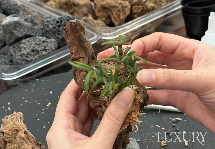기술적으로는 균형감, 근장根長의 노출, 가지의 배치 등 다양한 기준이 있겠지만 가장 중요한 건 ‘나무가 스스로의 이야기를 자연스럽게 하고 있는가’입니다. 인위적으로 형태를 잡아 굴곡진 나무보다는 작은 몸에 스스로 계절을 보낸 시간과 생명의 흐름이 담긴 분재가 좀 더 자연스럽고 멋스러운, 좋은 분재라고 생각해요. 나무를 들이는 이의 마음도 좋은 분재를 만드는 조건이 됩니다. 분재에 깃든 생명을 존중하고 애정하는 마음이, 그 분재를 가장 멋지게 만들어줄 테니까요.