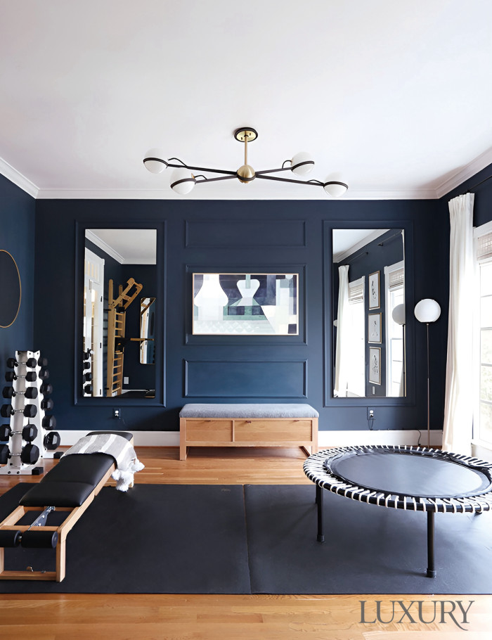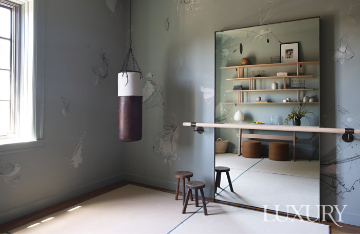 “지금 제 피트니스 룸은 현관문을 열면 가장 먼저 보이는 공간에 자리하고 있어요.” 노스캐롤라이나의 인테리어 디자인 스튜디오 ‘서니서클 스튜디오’의 수장 에린 휠러Erin Wheeler의 말이다. 운동 공간일수록 동선과 채광, 통풍 등의 요건을 고려해야 ‘몰입감’을 높일 수 있기에 내린 결정이었다. 이어 그는 깊이가 느껴지는 유색 페인트를 공간에 적용해볼 것을 제안했다. 유색 처리한 벽은 다른 공간과는 분리된 인상을 준다는 것이 이유. 클래식한 웨인스코팅으로 포인트도 주고 공간이 넓어 보이도록 벽면 양측에 전신 거울도 설치해 쾌적해 보인다. 피트니스 룸이 집의 하이라이트 스페이스가 된 것이다.