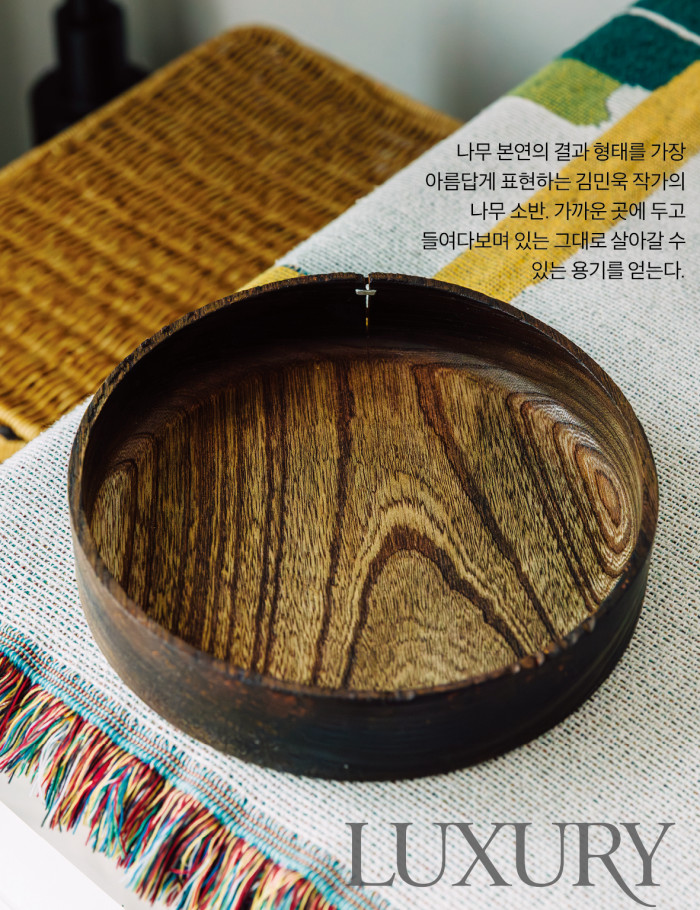 공예 갤러리 ‘갤러리 모순’에서 김민욱 작가의 나무 소반을 구매했다. 나무에 난 상처를 그대로 살린 그의 작품을 볼 때마다 “이렇게 살아도 괜찮다”라는 용기를 얻는다.
