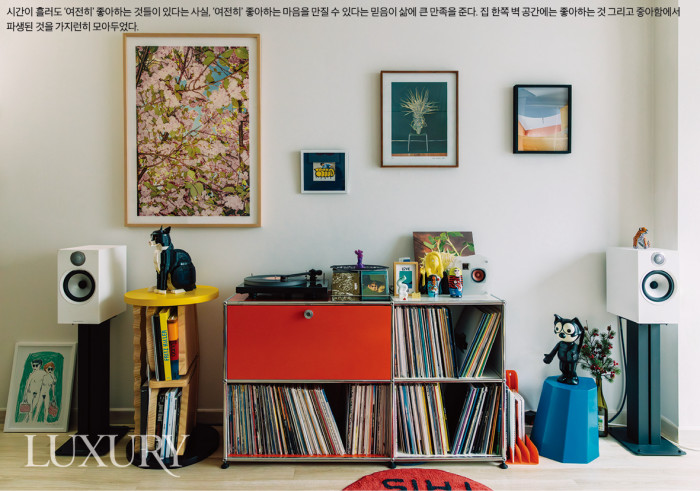 농담 반 진담 반으로 ‘아재 스타일’을 즐긴다고 말한다. 옷장에서 손이 가는 대로 무작정 꺼내 룩을 완성하기 때문이다. 아저씨들 다 그렇게 입지 않나?(웃음) 물론 정말 아저씨 같은 옷을 입는 건 아니다. 결론은 늘 장르와 영역에 상관없이 다양한 옷을 믹스해 입기 때문에, 쇼핑할 때는 원래의 내 옷과 잘 어울리는 것을 골라야 한다는 것이다. 이는 가전이나 가구 등 라이프스타일 아이템을 구매할 때도 적용된다.