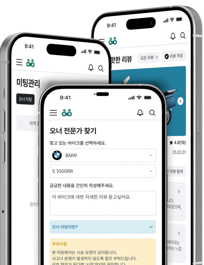 자동차는 사고가 나면 위치가 어디든 보험사의 긴급 출동 차량이 곧바로 달려온다. 체계적인 서비스망과 높은 이용률 덕분이다. 하지만 이륜차는 다르다. 최근에야 국내에 이륜차 대상의 긴급 출동 서비스가 생겼다지만, 아직은 도입 초기 단계일 뿐이다. 무엇보다 바이크는 구조적으로 타본 사람만이 해결할 수 있는 고장이 많고, 보험사의 출동이 큰 도움이 되지 않을 때가 많다. 가장 빠르고 현실적인 대안은 주변에 있는 다른 라이더들의 도움을 얻는 것이다. “크몽이나 당근 같은 재능 거래 서비스에서 영감을 얻었어요. 모터사이클과 자전거는 오너들만이 조언하고 조치할 수 있는 특수한 영역이 많기 때문에, 위치 기반성과 실시간성을 반영해 특화된 매칭 서비스를 선보이고 싶었죠.”