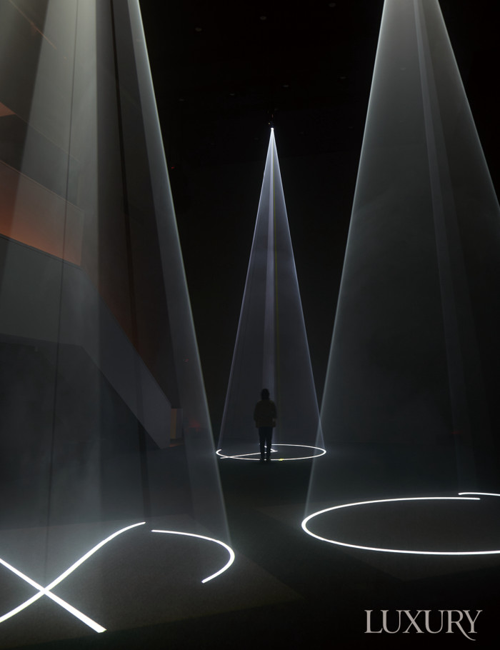 10.8m 높이의 천장에서 바닥으로 나란히 투사되는 2개의 ‘솔리드 라이트Solid Light’ 형상은