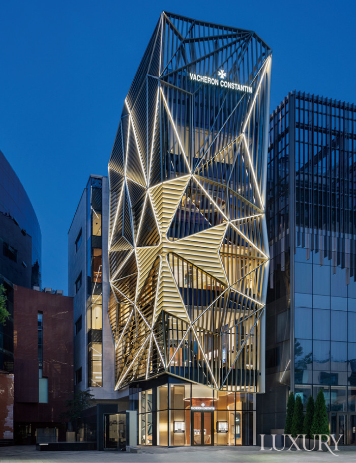 말테 크로스가 외관을 감싼 브라스 파사드의 메종 1755 서울.