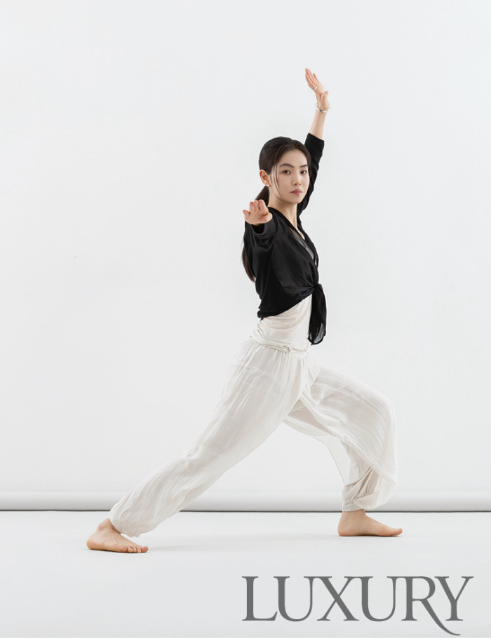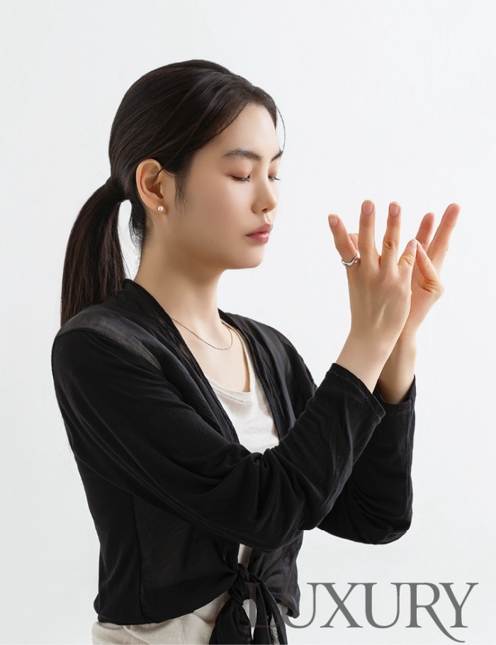 2020년부터 그는 비건식을 실천해왔다. “생각이 바뀌면서 자연스럽게 채식을 하게 됐어요. 아침에 더 가뿐하게 일어나고, 몸이 가벼워져 움직임에도 시너지 효과가 있는 것 같아요.” 매일 몸 수련을 하는데, 그날그날 끌리는 게 다르다. “요가, 춤, 명상, 색다른 움직임, 운동 중에 하고 싶은 걸 해요. 그렇게 발산해 몸이 풀리면 마음도 달라지죠. 요즘 들어 느끼는 건 20대 때와 다른 몸의 기능성이다. “옛날에 비해 늦게 자거나 루틴이 깨지면 힘들더라고요. 그래서 12시 전에 꼭 잠들려고 노력해요.” 이렇게 몸의 변화를 세심히 알아차리면, 몸이 원하는 대로 해줄 수 있다. 하지만 나이 먹는 것에 크게 신경은 쓰지 않는다. “보편적 미의 기준이 젊음에 맞춰져 있다 보니 나이 드는 걸 안 좋게 생각하는 경향이 있는데, 노화에 대한 자연스러움이 인식되면 좋겠어요. 몸 탐구의 목적은 자신에 대해 알아가는 것이죠. 노화도 우리 몸이 경험하는 일부분으로 받아들인다면 사회적으로도 인식이 달라지지 않을까요?
