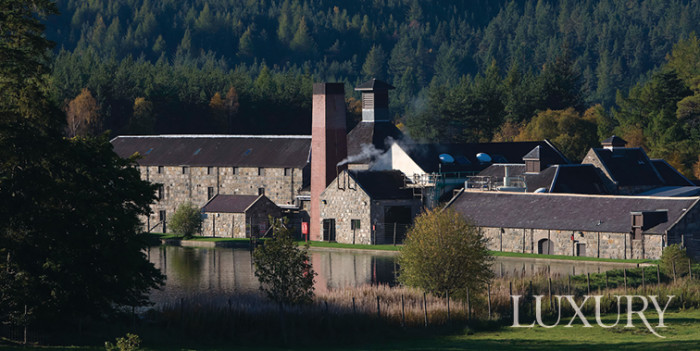 로얄 로크나가 증류소는 목가적인 풍경에 그림처럼 자리하고 있다.