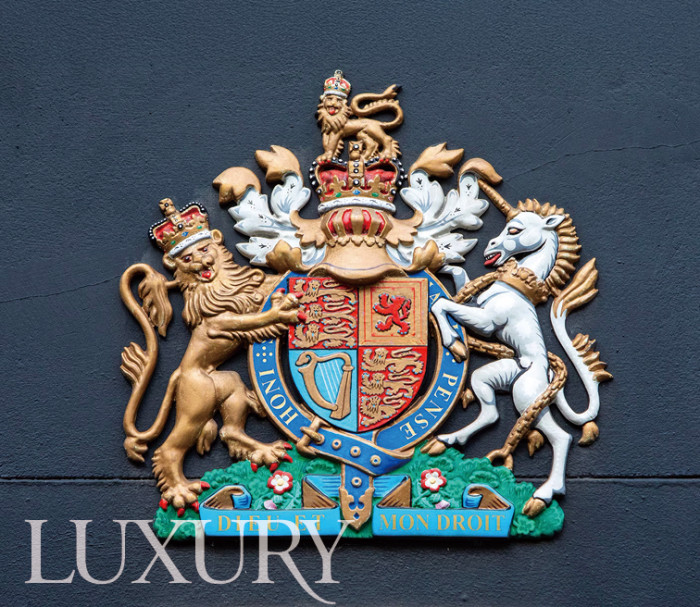 로열 워런트 인증 엠블럼. 왕권이 교체되면 해당 엠블럼과 문구 역시 교체된다.