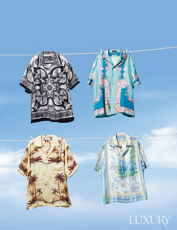 (시계방향으로) 화려한 마욜리카 패턴 프린트가 인상적인 실크 셔츠. 하나만 입어도 강렬한 존재감을 발산한다. 돌체앤가바나.