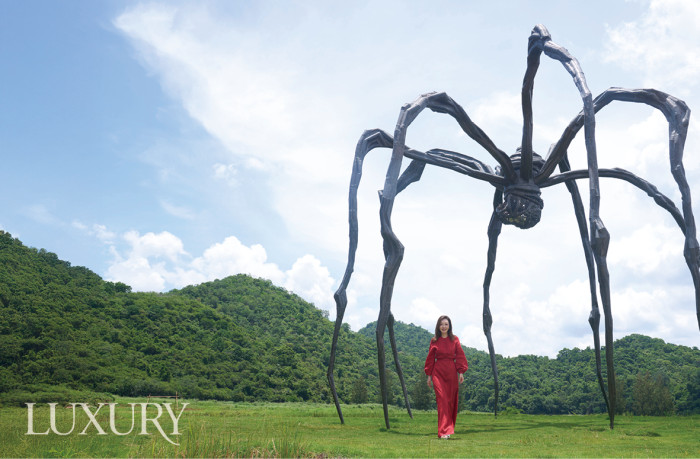 카오야이 아트 포레스트에 설치된 루이스 브르주아Louise Bourgeois의 조각 작품 ‘Maman’ 앞에 선