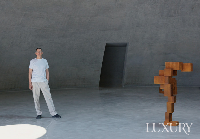 뮤지엄 산에 있는 세계 최초의 곰리 상설관 ‘그라운드Ground’에 선 작가 앤터니 곰리. 그는 인간의 신체와 공간 사이의 관계를 탐구하는 조각, 설치, 공공 미술 작품으로 찬사를 받아온 영국의 현대미술 작가다.