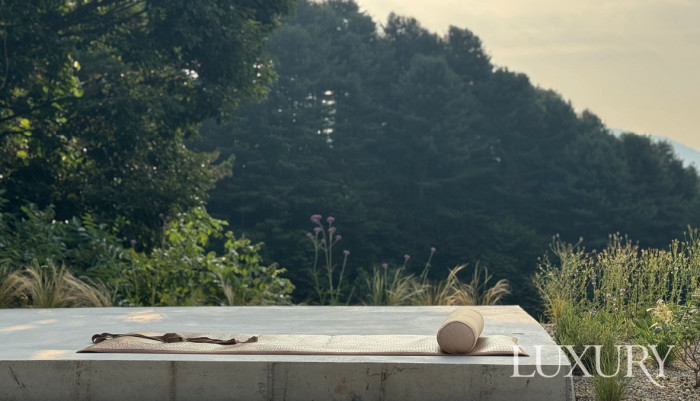 한서형 작가가 정원에 마련한 명상 공간. 때로는 누워서 하늘을 감상하기도 한다.