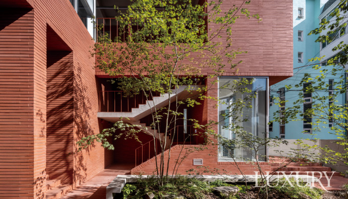 부산 달맞이 언덕에 위치한 복합 공간 에케ECKE의 벽돌과 어우러진 정원.