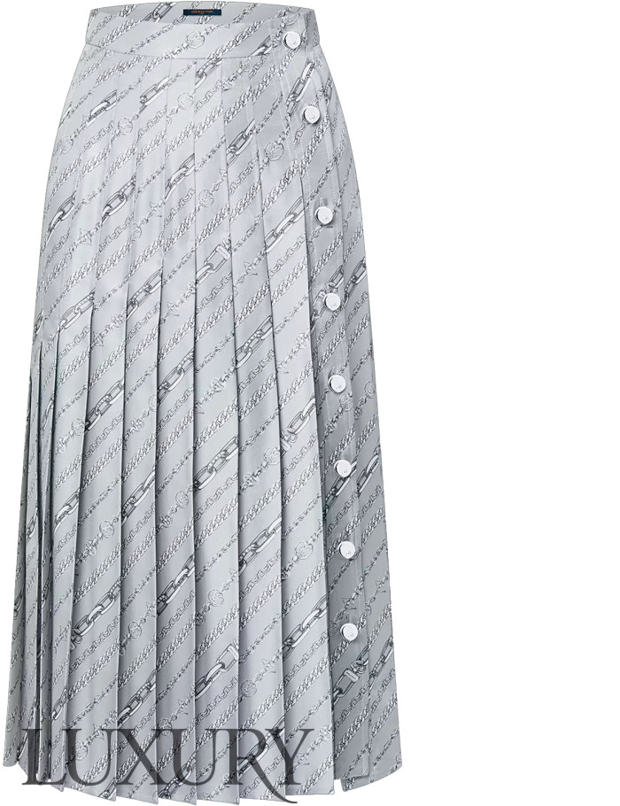 체인 모티프를 적용한 플리츠스커트. 100% 실크 소재로 제작해 찰랑거릴 때 더욱 아름답다. 루이 비통.