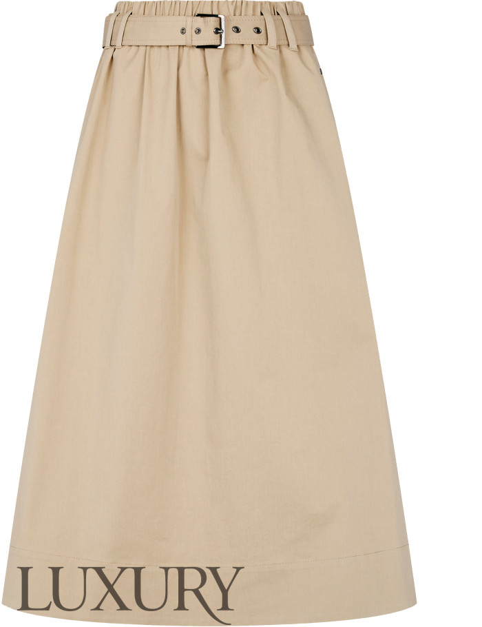 스트레치 코튼 소재로 편안한 움직임을 선사하는 벨티드 플레어스커트. 브루넬로 쿠치넬리.
