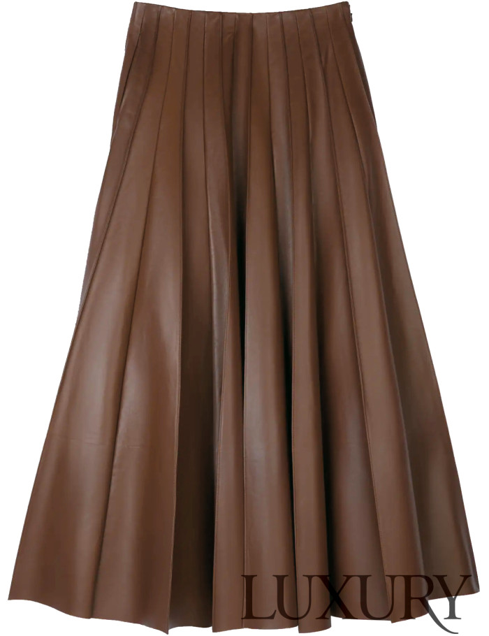 실용적인 사이드 포켓을 더한 플레어스커트. 나파 가죽으로 제작했지만 가볍고 편안하다. 토즈.