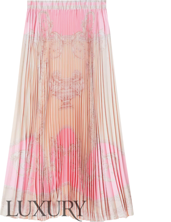하우스만의 정체성이 담긴 고풍스러운 바로크풍 프린트가 특징인 플리츠스커트. 베르사체.