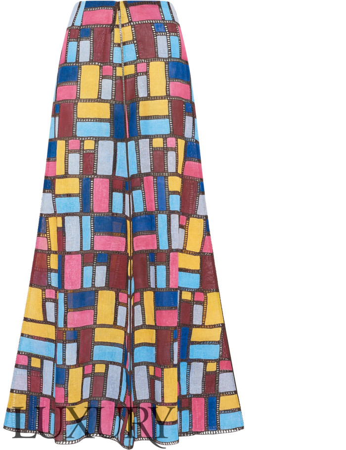 드라마틱하게 퍼지는 실루엣과 컬러풀한 색감이 인상적인 패치워크 스커트. 가브리엘라 허스트.
