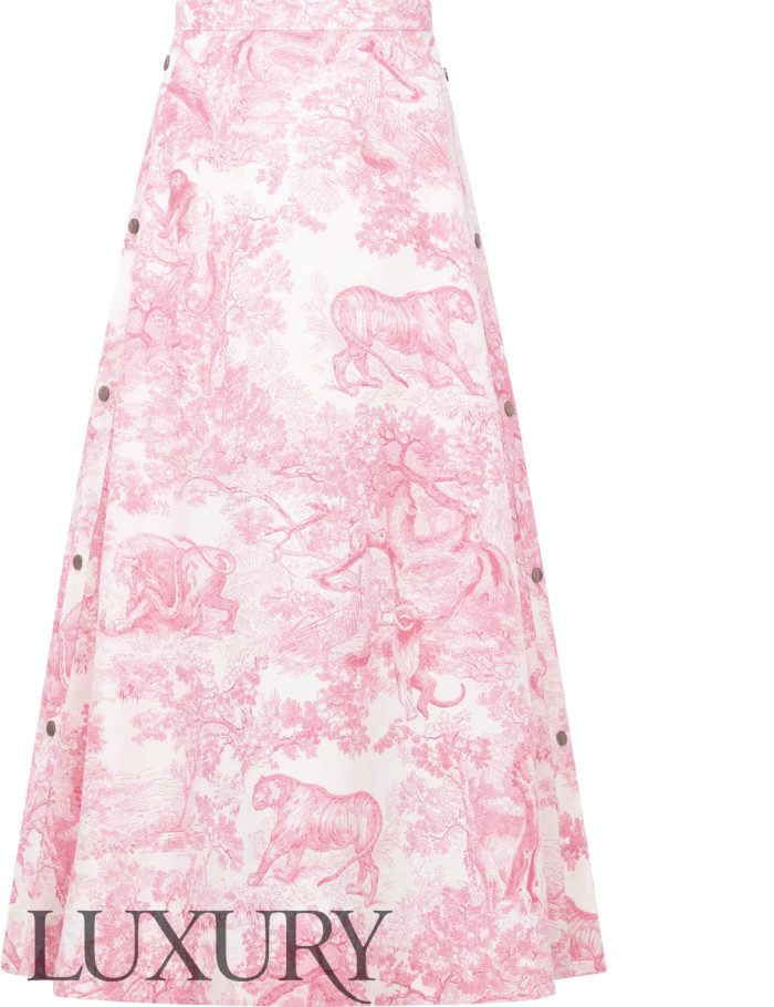옆면의 스냅 버튼을 활용해 다양하게 연출 가능한 플레어스커트. 디올.