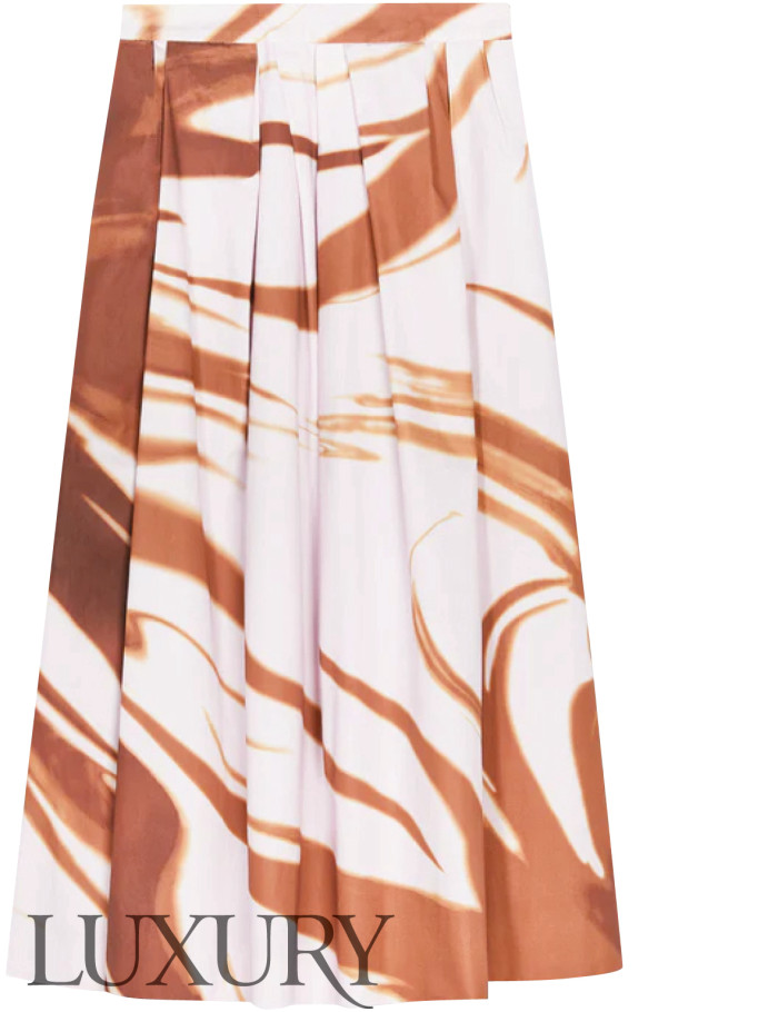 청량한 여름 감성을 플로럴 패턴으로 녹여낸 하이웨이스트 스커트. 막스마라.