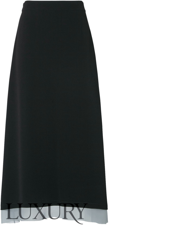 허리 뒤쪽으로 리본을 묶어 사이즈를 조절할 수 있는 블랙 실크 스커트. 펜디.