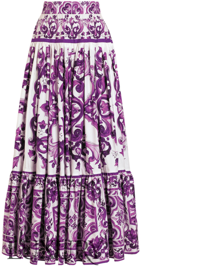 허리와 밑단 부분을 주름잡아 풍성하게 부풀린 마졸리카 프린트 스커트. 돌체앤가바나.