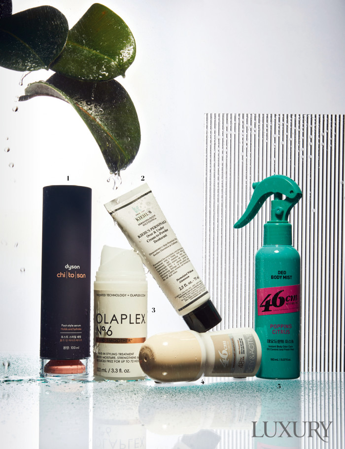 다른 어느 곳보다 습기에 가장 취약한 게 바로 머리카락이다. 부풀어 오르는 머릿결을 매끄럽게 가꾸기 위해서는 평소 모발 겉면에 얇은 보호막을 형성하는 제품을 자주 바를 것. 드라이 전, 젖은 모발에 바르고 말리면 차분한 헤어스타일링 연출을 돕는다. 퀴퀴한 땀 냄새를 잡아주는 디오더런트는 여름철 필수 휴대 아이템.