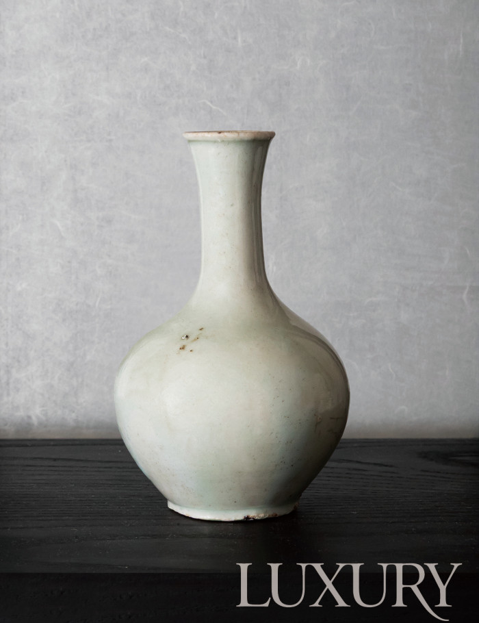 더 로우의 소프트 로퍼와 18세기 조선 시대 주병. 하나는 현대적인 미니멀리즘의 정점에 선 브랜드의 정제된 결과물이고, 다른 하나는 시간을 건너온 한국의 조형미를 품은 오브제다.