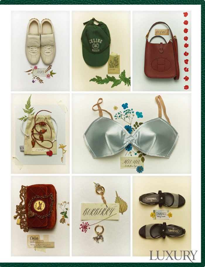 (상단 왼쪽부터) 화이트 스니커즈는 토즈. 캐주얼한 볼캡은 셀린느. ‘에블린’ 백은 에르메스. 도토리 백 참은 로에베.
