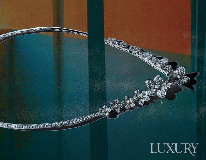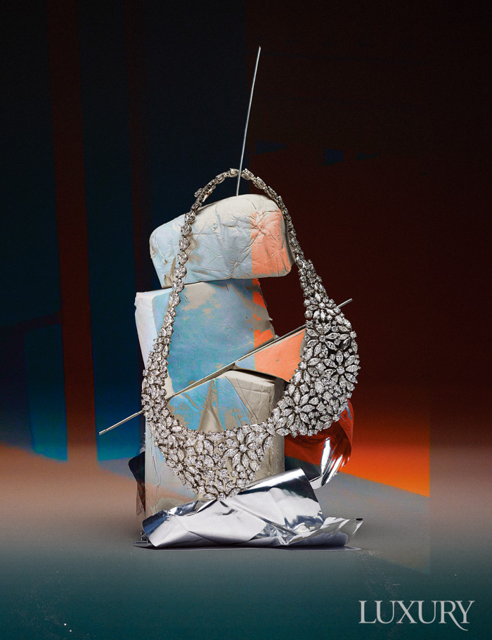 빠르고 간편함이 효율의 뜻이라면 장인 정신은 비효율 그 자체일 것이다. 하나의 작품을 완성하는 데 끈기와 인내, 고도의 기술과 집중력을 발휘하는 장인 정신은 하이 주얼리 메이킹의 핵심이기도 하다. 극한의 빛을 표현한 ‘라임라이트 익스트림리 피아제’ 네크리스는 플라워 패턴의 다이아몬드 세팅이 자수처럼 섬세하고 입체적이다. 피아제.