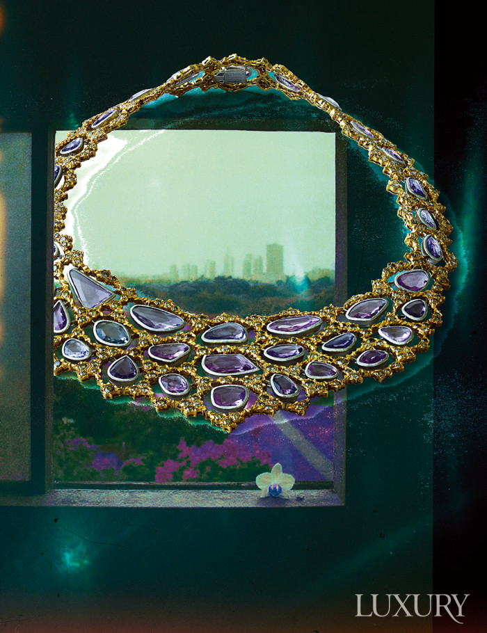 고귀하고 희소한 젬스톤은 경이로운 창조의 근원이다. 옐로 골드의 ‘유니카’ 네크리스. 오픈워크 기법으로 로즈 컷 핑크 사파이어의 맑은 색감을 강조했다. 부첼라티.