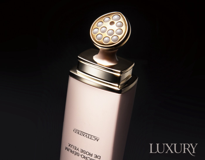 360도 멀티 펄 애플리케이터가 부드럽게 눈가 피부를 어루만지고 활력을 부여하는 ‘디올 프레스티지 르 마이크로 세럼 드 로즈 이으 액티베이티드’.