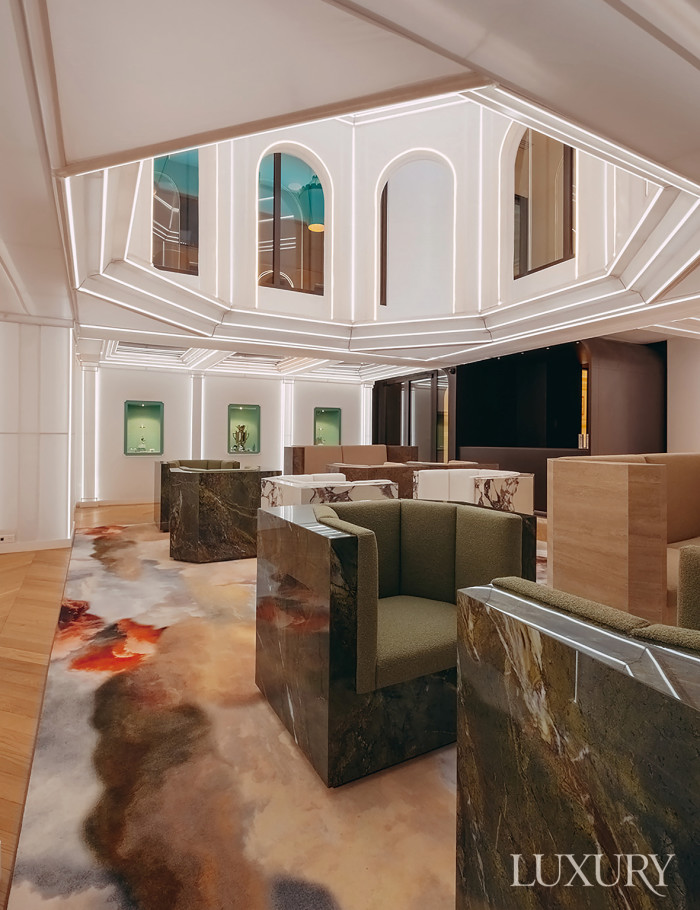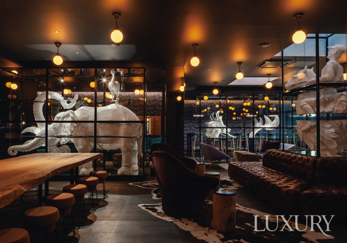 메신점 외에도 쿼르크의 다른 지점들 역시 독자적 미감으로 공간을 구성했다. ‘비앵페장스Bienfaisanc’ 지점의 경우 입구에는 극장 무대처럼 붉은 커튼을 드리우고 코끼리, 고래 등의 대형 조각들을 유리 진열장 안에 설치해 마치 자연사박물관 같은 장엄함을 자아낸다. 다양한 직종과 문화가 존재하는 ‘마들렌Madeleine’ 지점은 모로코 타일과 인도 벽화, 프랑스 르네상스 장식을 결합해 다문화적 풍경을 완성했다. 특히 리셉션에는 르네상스 회화에서 착안한 조각형 천장 몰딩을, 회의실에는 아프리카 직조물과 이탈리아 디자인 가구를 함께 배치한 것이 흥미롭다. 럭셔리 브랜드들이 밀집해 있는 ‘생토노레Saint-Honor 'e ’ 지점은 일본의 선禪 철학을 반영해 다른 지점들에 비해 좀 더 미니멀한 재료와 색감으로 차분하게 연출했다. 천연 목재와 석재를 주로 사용해 입주자들의 집중도를 높이고 사유할 수 있는 환경을 만드는 데 초점을 맞췄다. 한편 ‘오스만Haussmann’ 지점은 조각과 건축 사이를 오가는 설치 예술에 집중한 사례다. 공간 중심부에 스테인리스스틸로 만든 구형 구조물을 설치하고, 내부 공간은 조형적 곡선과 반사광으로 가득 채웠다. 특히 이곳에서는 소규모 예술 전시와 퍼포먼스를 주기적으로 개최하며 문화 공간으로의 정체성을 강화하고 있다.