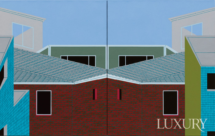 부모님께 물려받은 작품을 제외하면, 첫 구매는 오병재 작가의 ‘Patterned Place’(2018)였습니다. 액자를 맞추러 갔다가 샘플을 보던 중 우연히 발견했는데요. 이후 작가를 만나 집안 배경(할아버지 오지호 화백, 아버지 오승윤 화백)과 역원근법에 관한 설명을 들으며 소장해야겠다는 확신을 얻었습니다. 당장 구할 수 있는 작품이 없어 약 6개월을 기다려야 했지만요. 양쪽을 바꿔 걸 수 있는 딥틱diptych(두 폭 화) 형태라 기분에 따라 수없이 위치를 달리하다 5년 만에 자리를 정해 액자를 맞췄습니다.