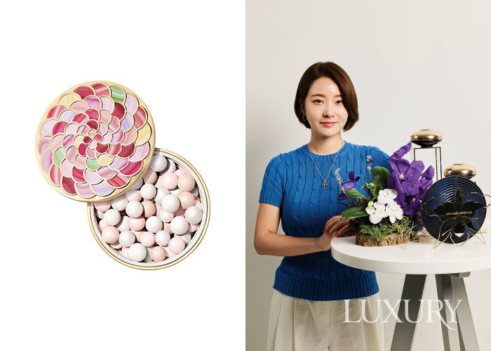 좌) 겔랑의 ‘메테오리트 라이트 리빌링 펄 오브 파우더’. / 우) 민지영(브랜드 마케팅 컨설턴트)