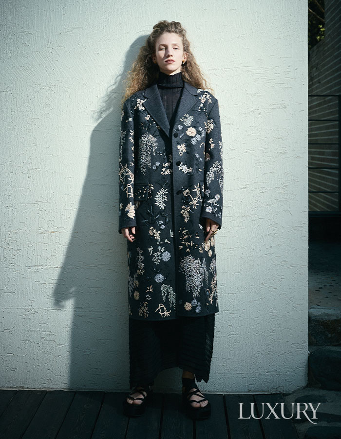 섬세한 자수 꽃 장식이 돋보이는 코트,