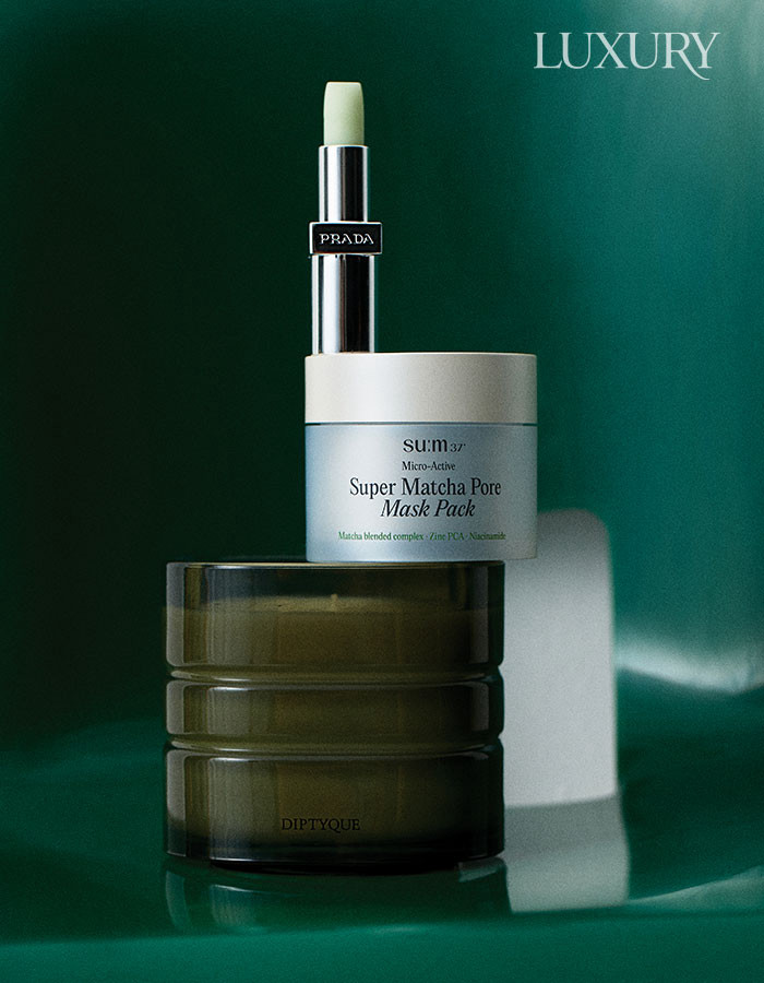 프라다 립밤 트라이앵글 셰이프의 불릿으로 눈길을 끄는 립밤. 끈적이지 않는 자연스러운 매트 피니시를 선사한다. 프라다 뷰티. 마이크로액티브 슈퍼 말차 포어 마스크 모공 속 노폐물을 제거해주는 녹차수와 녹차 추출물을 함유한 워시 오프 타입 마스크 팩. 숨37°. 레 몽드 드 딥티크 교토 남쪽, 고요한 사원의 숲에서 길어 올린 영감을 담은 말차 캔들. 이끼의 풋풋한 향과 말차의 부드러운 결이 겹겹이 번지며, 공간은 어느새 사색과 명상의 깊은 호흡으로 채워진다. 딥티크.