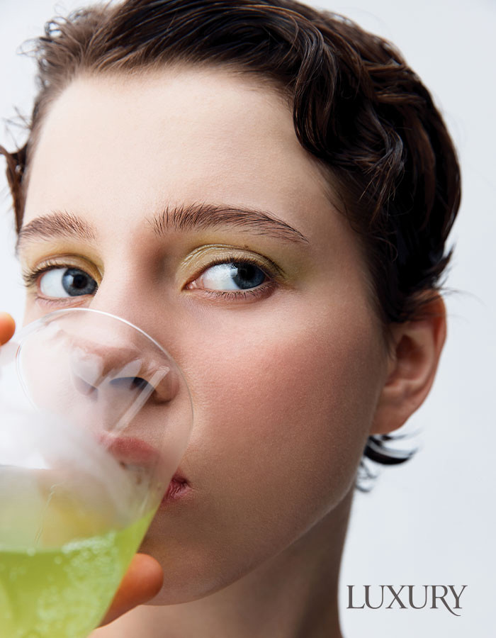 자연 속에서 천천히 우려낸 듯한 그린 컬러는 피부 위에서 맑은 빛과 고요한 기품을 동시에 드러낸다. 그린을 메인으로 하는 화장법이 흔하고 쉬운 것은 아니나 그만큼 살짝 더했을 때의 효과는 놀랍다. 차가운 듯 부드럽고, 내추럴하면서도 예술적인 긴장감이 피어나는 것. 베이스는 피부 본연의 결을 최대한 살린 헬시 글로로 표현하고, 블러셔는 은은한 핑크 톤을 넓게 펴 발라 피부 위에 투명하게 번지듯 스며들게 한다. 그 위로 말차의 빛을 닮은 아이 메이크업을 더하면 신비로운 공기가 얼굴 위에 내려앉는다. 눈두덩 전체에 맑은 그린 섀도를 은은하게 레이어링하고, 피치톤을 가볍게 덧입히면 청초한 무드가 완성된다. 마지막으로 눈머리에 실버 펄을 얹으면, 고급스러운 빛이 겹쳐져 한층 깊이 있는 눈매가 드러난다.