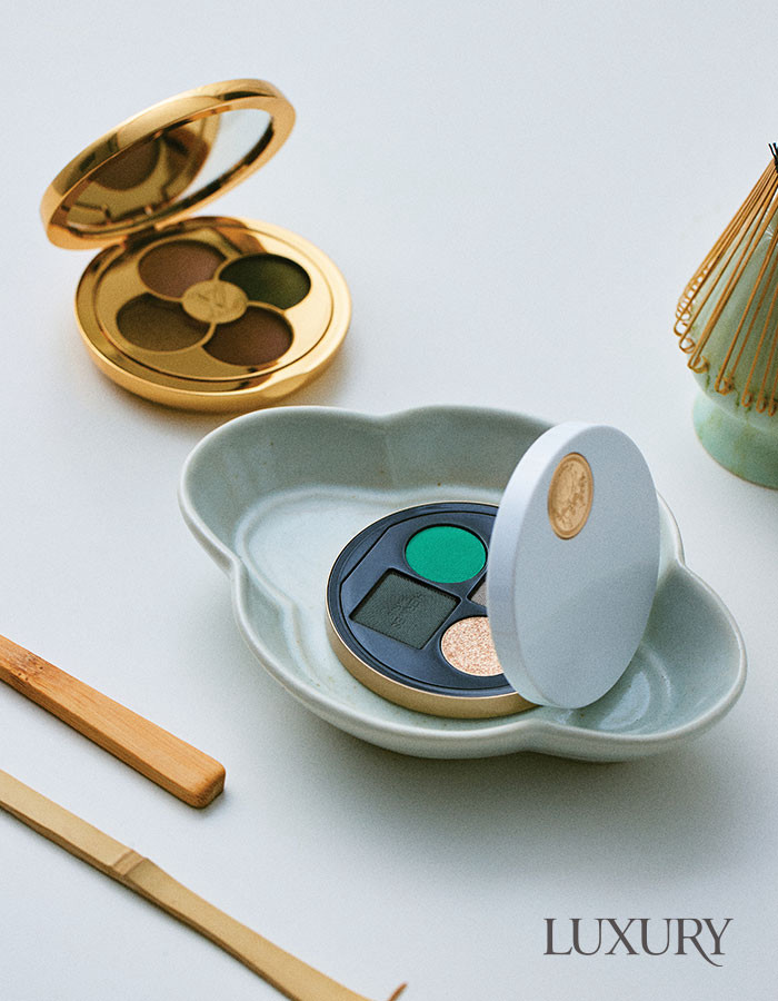 LV 옴브르 아이섀도우 팔레트 951 포스 오브 네이처 모노그램 플라워를 닮은 4색 패널을 품은 팔레트. 루이 비통의 자물쇠 제작 헤리티지에서 영감을 받은 혁신적 구조로 각 섀도를 개별 교체할 수 있으며 각인도 가능하다. 라 보떼 루이 비통. 옹브르 데르메스 컬러 팔레트 세트 오브 포 아이섀도우 02 옹브르 베제탈 푸른 나뭇잎을 연상시키는 그리너리한 파우더와 에르메스의 아이코닉한 컬러를 함께 구성한 팔레트. 에르메스 뷰티.