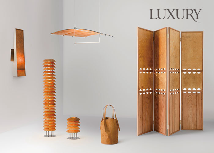가죽의 대체재로 떠오른 버섯 균사체의 신소재 ‘레이시’를 적용해 만든 가구와 소품들.