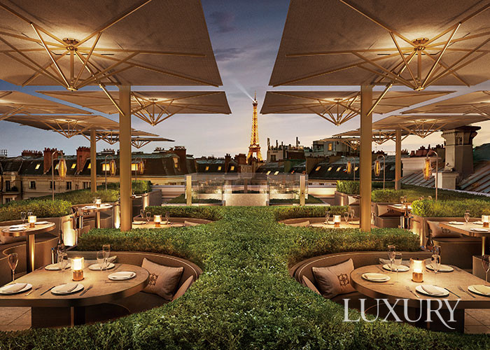 파리의 환상적인 뷰를 감상하며 식사할 수 있는 RH 파리의 루프톱 레스토랑 ‘르 프티 RH’ .
