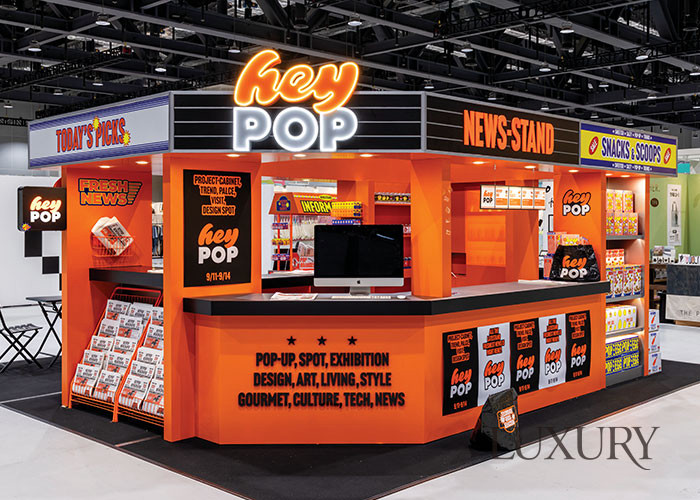 지금 가장 주목해야 할 팝업 스토어와 뜨는 공간을 소개하는 디지털 플랫폼 ‘헤이팝’의 감각적인 부스.