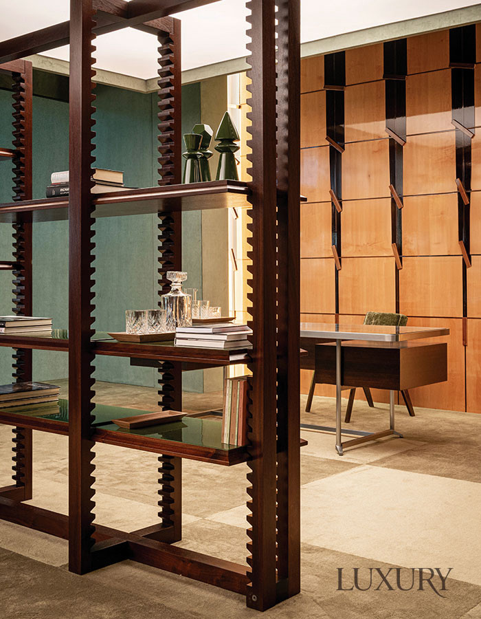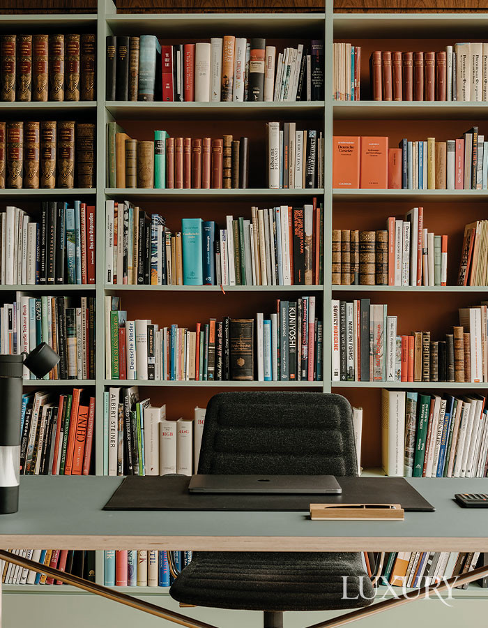 서재가 집 안의 중심 공간으로 옮겨오며, 생활과 밀접하게 연결된 열린 공간으로 진화하고 있다. 포로Porro의 ‘글라이드미루Glide Miru’ 시스템은 이러한 흐름을 잘 보여준다. 디자이너 피에로 리소니가 설계한 이 모듈형 책장은 상황에 따라 배치를 달리하거나 확장할 수 있으며, 하나의 구조물이자 인테리어 요소로 작동한다. 거실 한쪽 벽을 가득 채운 책장은 공간 전체를 서재로 변모시키는 힘을 갖는다. 넉넉한 테이블과 전면 창에서 쏟아지는 자연광은 거실을 단순한 생활 공간에서 벗어나 작업과 사유가 공존하는 아틀리에로 바꾼다.