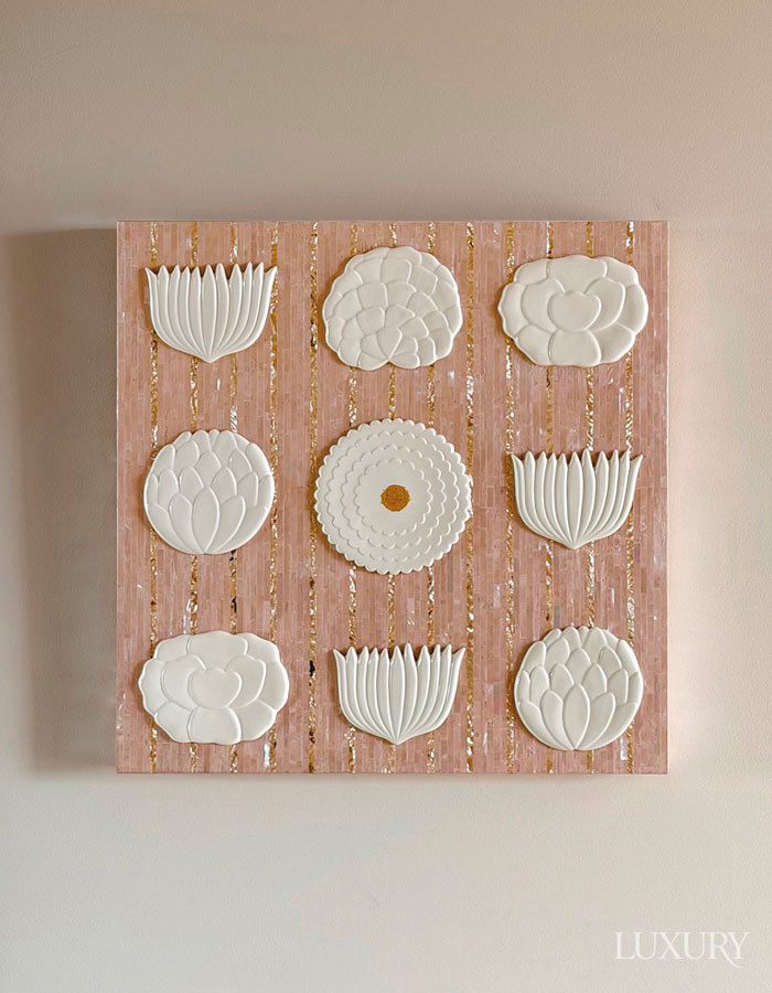 위해 분홍색으로 특별히 제작된 이정은 작가의 ‘자개화훼도’.