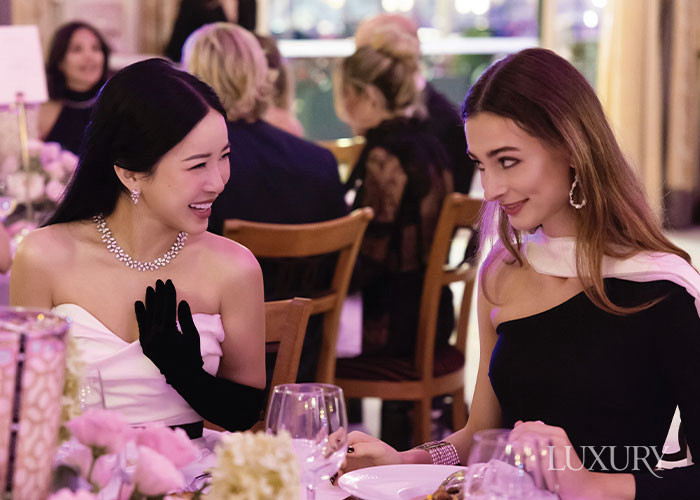 참석자들과 함께한 테이블에는 유럽 각지에서 이번 행사를 위해 날아온 친구들이 자리했다. 왼쪽부터 프랑스 사교계의 친한 친구인 클라라 마르즐로프Clara Marzloff, 뒤제스 공작 샤를 드 크뤼솔Charles de Crussol d’Uzès, 율랄리아 드 오를레앙 부르봉Eulalia de Orleans Bourbon 공주. 모두가 뜻을 함께하며 뜻깊은 시간을 보냈다.