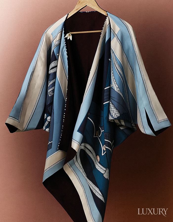 기모노 스타일의 실크 리버서블 재킷은 에르메스.