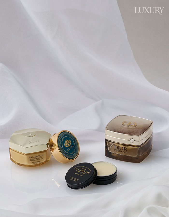 프레스티지 르 밤 드 미뉘 피부 개선 효과를 선사하는 시그너처 복합체, 로사펩타이드™가 밤사이 피부의 시간을 다시 맞추고활력 강화에 도움을 준다. 디올 뷰티. 너리싱 밤 식물성 오일과 천연 오일, 버터를 고농축해 만든 멀티 유즈 밤. 풍부한 영양을 제공하는 시어버터가 건조함을 완화하는 데 도움을 준다. 구찌 뷰티. 멀티 퍼포즈 밤 클래식하면서도 프레시함을 느낄 수 있는 베르가모트 향을 담은 멀티 밤. 손과 볼, 발꿈치 등 필요한 부위에 사용한다. 르 라보. 아베이 로얄 인텐스 리페어 유쓰 오일 인 밤 위상섬의 블랙 비 허니를 주축으로 하는 다이내믹 블랙 비 테크놀로지와 진정 효과가 뛰어난 시카 왁스가 즉각적인 편안함과 개선 효과를 선사한다. 겔랑.